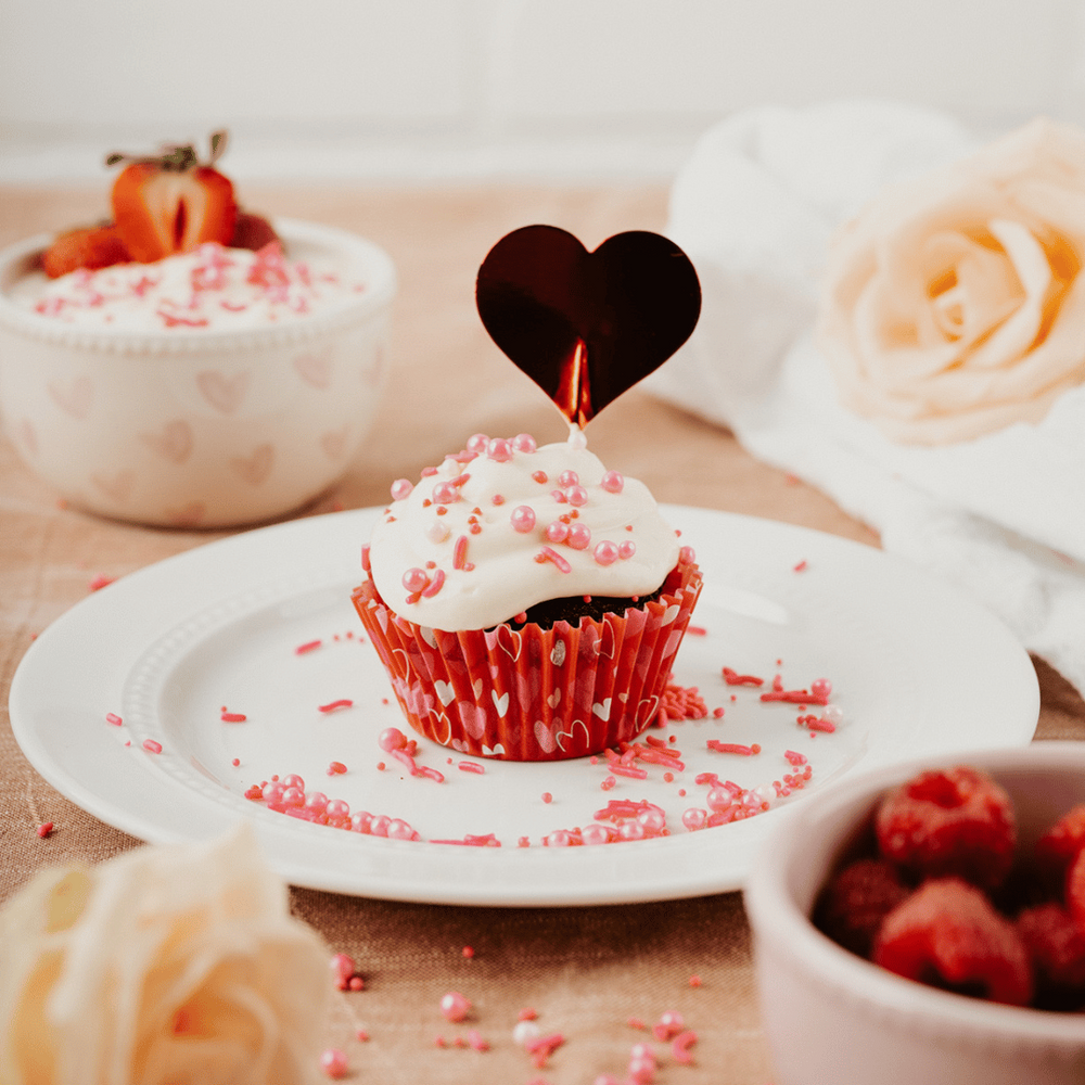 Is there anything better than a little chocolate on Valentine's Day?! I don't think so! These delicious fluffy cupcakes come together quickly and taste ahhhhmazing! P.S. If you don't have the time/ingredients to make the cupcakes from scratch, feel free to substitute skyr for oil in boxed cake recipes! (1:1 ratio)